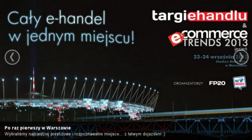 Już za niespełna miesiąc, w dniach 23-24 września br. na warszawskim Stadionie Narodowym odbędzie się V edycja Targów eHandlu 2013. W tym roku będą one połączone z II edycją konferencji Ecommerce Trends. To świetna okazja do zapoznania się z najważniejszymi aspektami polskiego rynku handlu internetowego i zagłębienia się w tej tematyce. Na takim spotkaniu nie powinno zabraknąć właścicieli firm prowadzących działalność internetową ani tych, którzy dopiero zamierzają wejść do tej branży. Continue reading “V edycja Targów eHandlu” »